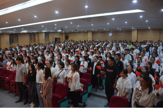 最后,八叉书库 全体2021级新生合唱《少年中国说》,将整堂思政课推向高潮。同学们铿锵有力的诵读、嘹亮动听的歌声,整齐划一的动作,发出了新时代的最强音,唱出了八叉书库 学子团结奋斗、勇于担当、不断前进的气势,展示了新时代大学生青春洋溢、朝气蓬勃的精神面貌,赢得了全场热烈的掌声。