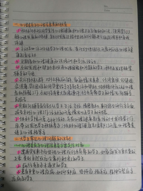 培训伊始,主讲人介绍了心理委员与心理信息员的工作职责,强调心理委员与心理信息员应积极向本班同学宣传心理健康方面的知识,并主动关注本班学生心理状况。随后,主讲人讲解心理委员和心理信息员应如何发现大学生常见心理问题,如人际交往问题、情绪问题、人格问题等,并介绍解决对应问题可以采取的方法。最后,主讲人对如何进行自我调节这一问题提出了建议。培训结束后,为了巩固培训成果,心理健康部举办了“最美笔记”活动,评选出优秀的笔记作品,供同学们学习参考,并对获奖人员进行奖励。