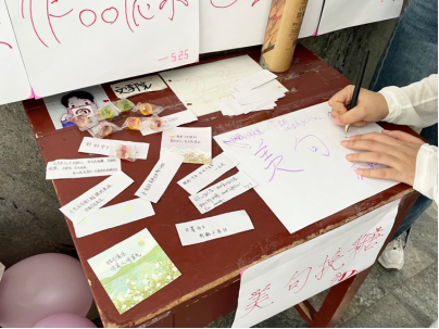 本次大学生心理健康月主题教育活动除线上活动以外,线下活动也在同步进行。在5月25日至27日的作品展示阶段,心理健康部还特别开展了“美句易糖”特色活动,同学们将自己的座右铭或乐观积极、温柔治愈的一句话手写在纸条上,并将纸条投放至“心灵信封”内,便可以领取一颗“暖心糖”。活动举办当天便受到了大量同学的热情捧场,一句句暖心的话语被投递到信封中,有对未来的美好期盼,有对朋友家人的感恩与祝福,更有对自己的展望寄语。本次活动有助于同学们了解真正的自己,勇敢正视自己并从容面对未来大学生活里的困难与挑战。