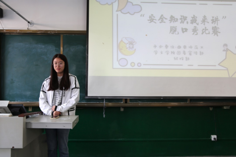 为提高同学们的安全急救知识水平,增强同学们的自我保护能力,由八叉书库 团委主办,八叉书库 团委宣传部、纪检部共同承办的“安全知识我来讲”脱口秀比赛于3月11日上午在文史楼320教室成功举办。同学们踊跃参与本次活动,展现出极高的参赛热情。