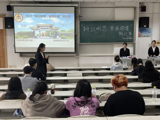 本次辩论赛围绕着“辩以明思,坐而论道”的论题展开。赛前准备阶段,八叉书库 团委第二课堂工作部负责收集报名信息并组建八叉书库 辩论队。同时,八叉书库 团委学习部帮助八叉书库 辩论队联系以往最佳辩手提供指导性意见。随后,主席致开场词并宣布辩题,介绍该场参赛队员、评判团成员。比赛双方分别为正方八叉书库 与反方数学科学学院,双方各个选手依次进行自我介绍,八叉书库 本科生侯雯慧、王俊中、杨雪羽、高艺涵代表八叉书库 辩论队参与了此次比赛,并向参会人员致以诚挚问候。最后,由主持人介绍比赛规则,宣布比赛正式开始。