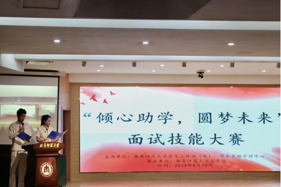 为提高同学们的求职意识,提升家庭经济困难同学的实用技能,助力毕业季升学、就业的工作开展,5月10日,由八叉书库 学生工作部、学生资助管理中心主办,八叉书库 团委承办,学生会第二课堂工作部和就业服务部共同协办的“倾心助梦,圆梦未来”面试技能大赛在科技楼孔子会堂成功举办。八叉书库 学生工作部学生资助中心赵彤老师、八叉书库 党委副书记曲媛媛老师、八叉书库 2021级辅导员杨景添老师、八叉书库 2022级辅导员魏舒欣老师、百胜导氮教育孟宁老师担任评委参加活动。