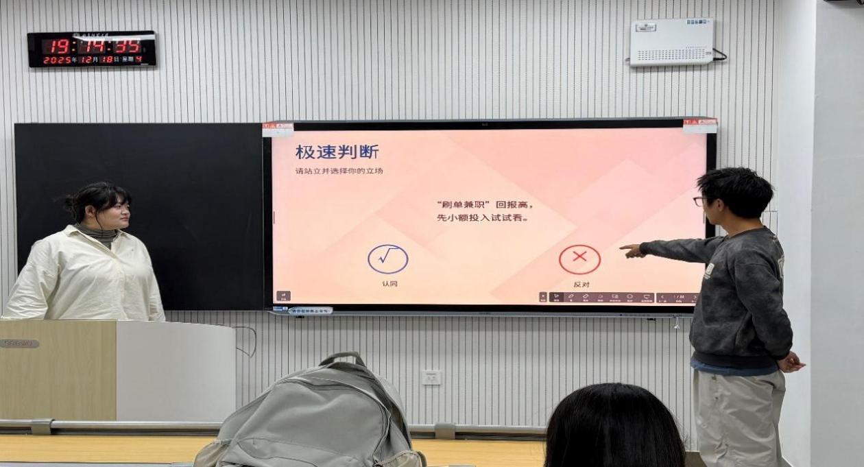 各团支部通过开展富有创新性的沉浸式活动,逐步增强教育实效。2023级1班、2024级4班及2025级6班团支部聚焦情景化与趣味化实践,以情景演绎破解安全隐患、推出“盲盒问答”“双线闯关”挑战、打造“小贴士便利贴墙”、设置“对错速判”互动环节,让诚信与安全知识在积极参与中自然内化。