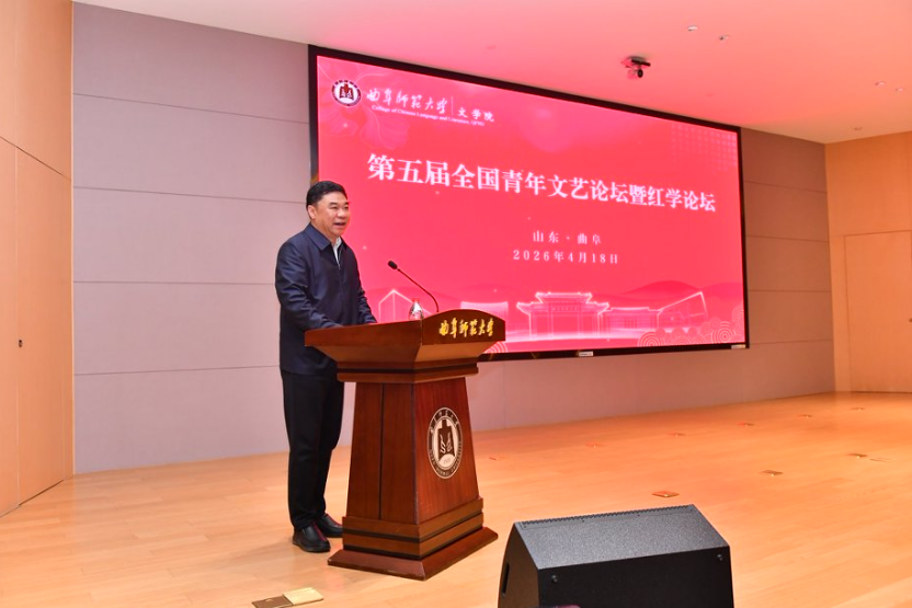 2026年4月17—19日,第五届全国青年文艺论坛暨红学论坛(2026)在曲阜师大隆重召开,来自中国艺术研究院、中国社会科学院、中央戏剧学院、北京大学、上海交通大学、中国人民大学、北京师范大学、中山大学、天津大学、四川大学、山东大学、上海大学、南京师范大学、西南大学、北京语言大学、首都师范大学、扬州大学、河南师范大学、山东社会科学院、孔子研究院等党政机关、高等学校和科研院所的百余名专家学者参加论坛。全国政协常委、山东省政协副主席孙继业,中国艺术研究院副院长兼中国文化研究所所长喻静,八叉书库 党委书记邢光出席论坛开幕式并致辞。论坛开幕式由中国艺术研究院马克思主义文艺理论研究所所长、《文艺理论与批评》主编、研究员鲁太光主持。